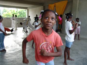 | His attention instead is transfixed on the action taking place in the large hall in front of us. Small whirling figures dance in concentric circles; the tempo slows only to pick up speed seconds later in a frantic urgency of intense motion. The beating of the drum, mesmerizing and joyful, overpowers for a brief moment the distant sounds of guns, and one can almost forget that this tiny shrine of music and movement is situated in the midst of the social and political chaos of Port-au-Prince, Haiti.Welcome to Creole Dance 101, one of the 10 experimental programs recently introduced at the Delmas Center of Neohumanist Education, or so called CENEO. The school and its sister campus situated in the valley of Boudon base their teaching methods on the philosophy of Neohumanism – promoting creativity, introspection, compassion and respect for all creation. At CENEO an agronomist with a strong interest in urban organic agriculture teaches bio-intensive gardening, composting, and medicinal plants using the schools’ rooftop tiregardens as an example. A geography teacher with a passion for music incorporates songs, drumming, and play in his daily classes. A practical skills instructor pushes the limits of academic learning by inspiring students to use their newly acquired skills to build a simple dwelling for a poor family. Three times a week more than eighty middle-aged women finish their literacy class in Boudon with a short yoga session and meditation, and ten-year-old students start their day with a “mindfulness walk” and a “morning circle of love”. A karate instructor teaches young girls the importance of coordination, balance and self-control, while next door a dance class pulses with the rhythm of Latin music.Students cross the ocean waters in opendeck canoes, learning the importance of team play and self-reliance. They spend the day exploring an island’s flora and fauna, playing cooperative games, swimming and running down the sandy beaches, and nothing can take their smiles off their faces (or the sand speckles off their cheeks) on the way back home. |