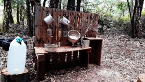 At “Bosque das Bolotas” (acorn woods) we have some basic structures that help us. We have a teepee where we do our morning circles, our quiet and resting time and reading books time, and where we keep some wood chests that allow us to store all our pedagogical materials and books.
