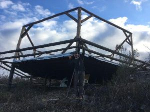 Further developments took place in the construction of the Meditation Hall: setting up the main structure. Volunteers from different countries took part in the construction work, putting cypress columns in place which are now ready for the reciprocal roof. The collective efforts of the team make such a big task become a piece of the whole. When it is complete, the Meditation Hall will be the gathering point of Campo Divino, a place where spiritual practices and community encounters will melt into one.
